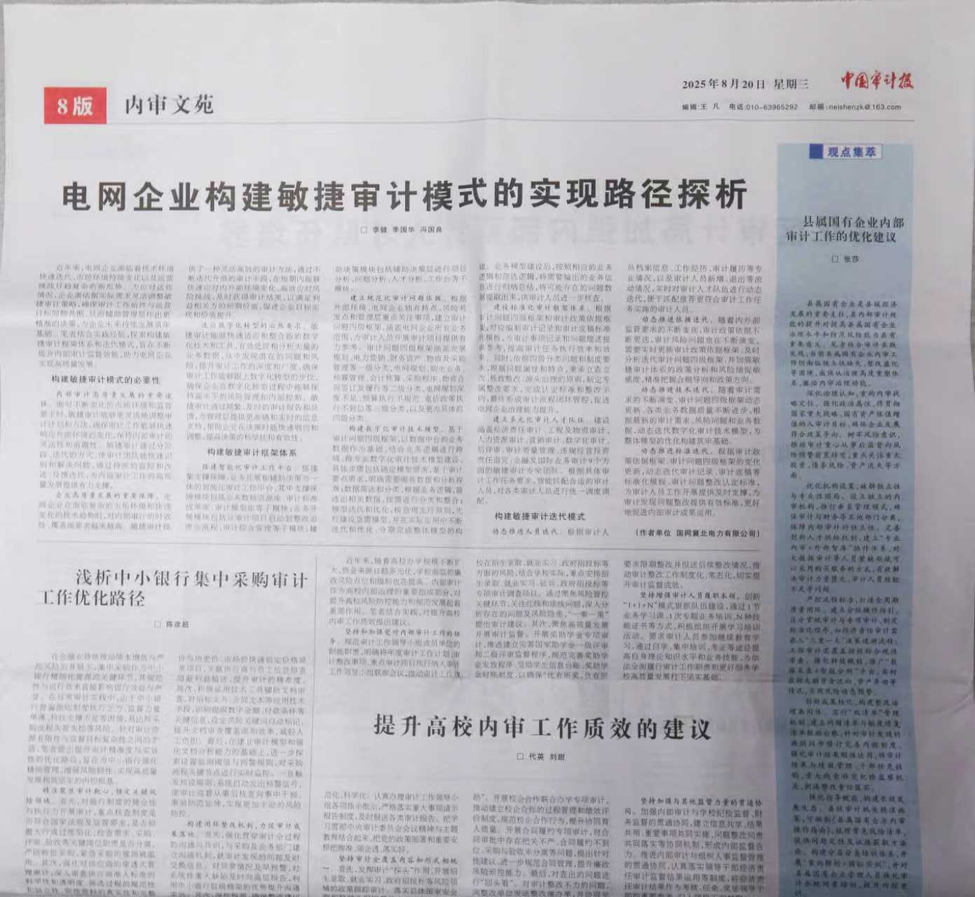 8月20日,《中国审计报》专题刊发我校审计处撰写的《提升高校内审工作质效的建议》一文,系统介绍并推广了我校创新形成的“1+1+N”内部审计工作模式。该模式获得全国审计系统的广泛关注和认可。